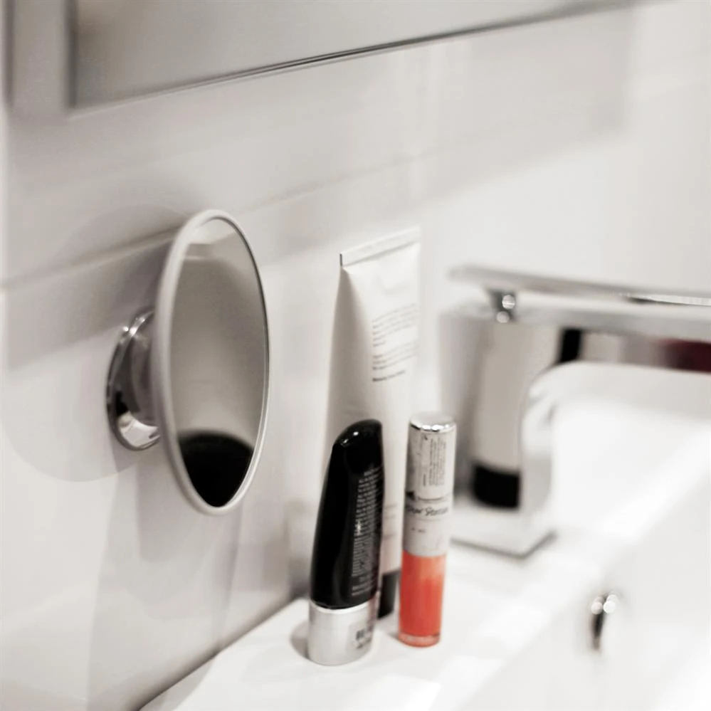 De Bosign verwijderbare make-up spiegel – ontworpen door Jonathan Maltz – is een praktische vergrotende spiegel, die een ideale hulp is bij het aanbrengen en verwijderen van make-up. Dankzij de zuignap is de spiegel eenvoudig te monteren op alle vlakke oppervlakken en kan deze worden verplaatst en afgesteld en gekanteld naar uw wensen. De spiegel is verbonden met de zuignap middels een magneet: op deze manier kunt u de spiegel tevens weer eenvoudig verwijderen. Een perfecte aanvulling voor elke badkamer!